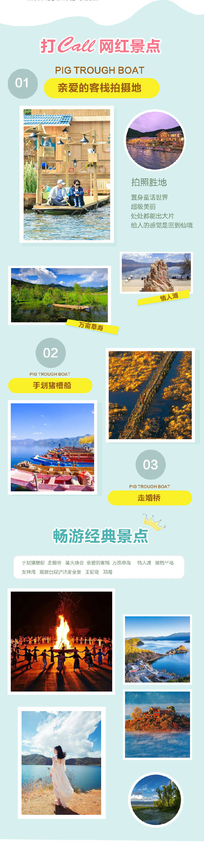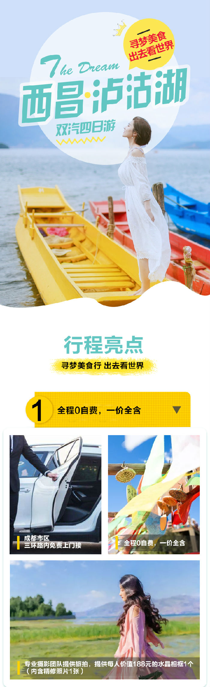 7.①云南段环湖游览人文、自然通票 ②摩梭风味餐 3,手划猪槽船100分钟至王妃岛,4情迷摩梭大晚会,赠送项目不去,费用不退