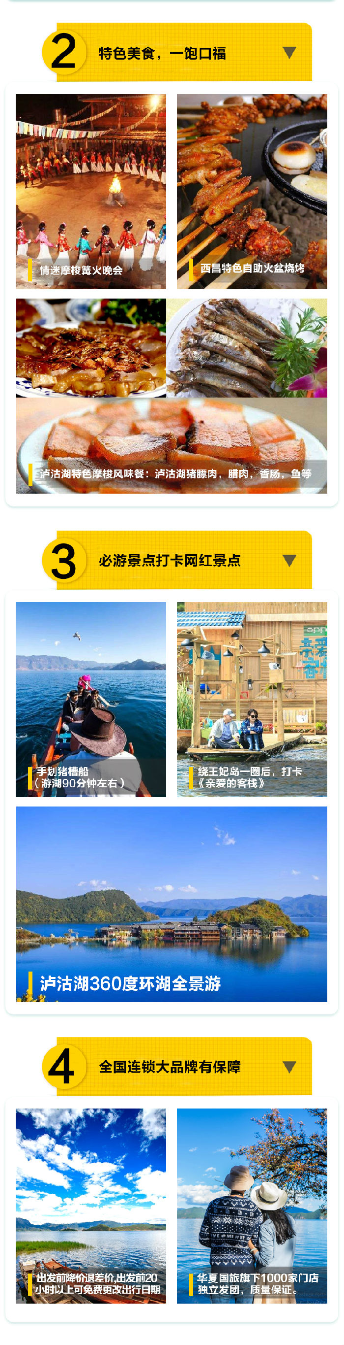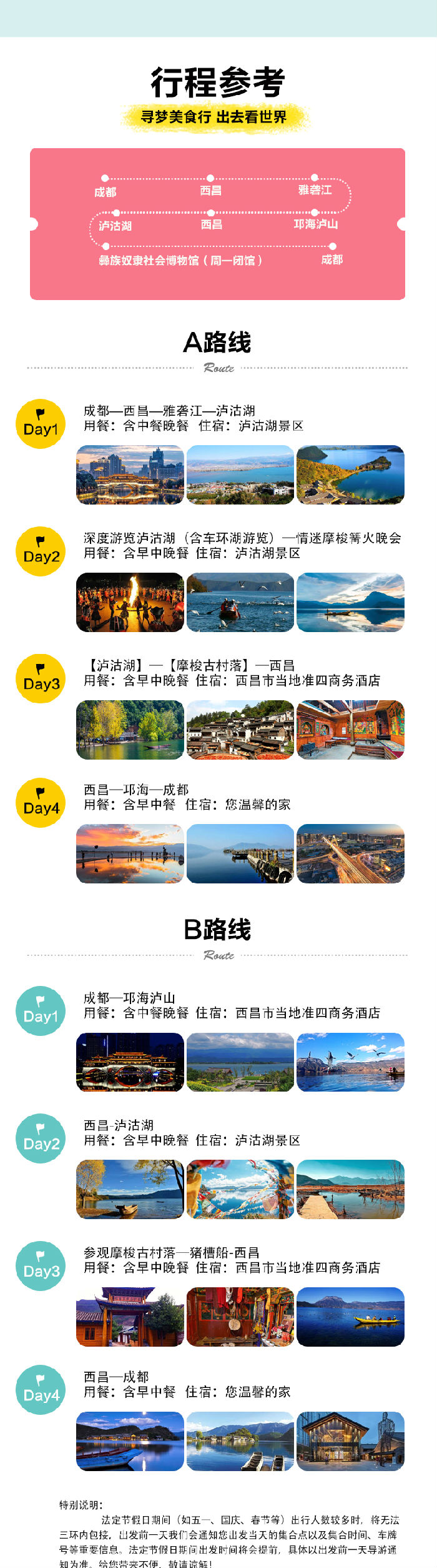 4.门票:泸沽湖景区大门票、泸山大门票(活动价门票优惠不退)